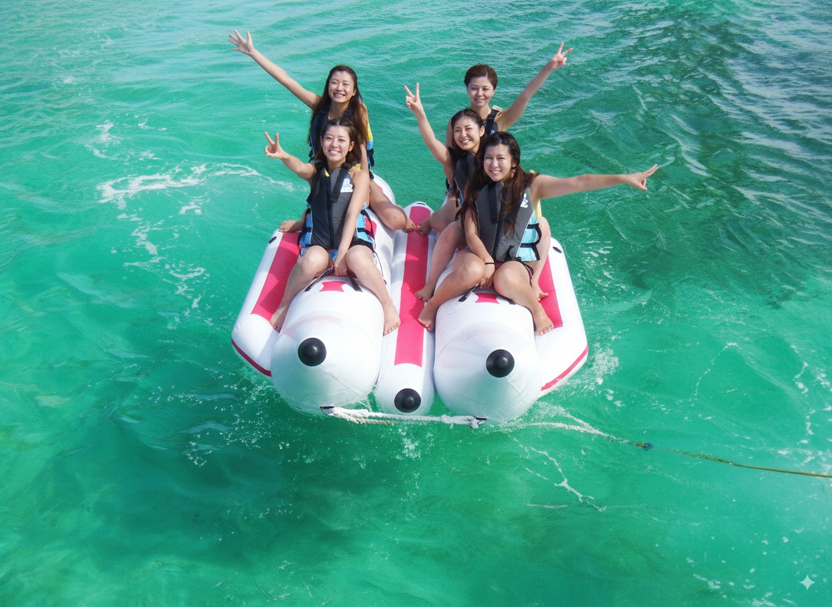 ① ファミリープラン | 約2時間 | シュノーケル+バナナボート+マーブル+ジェットスキー | 大人 12,100円/小人 11,000円 |